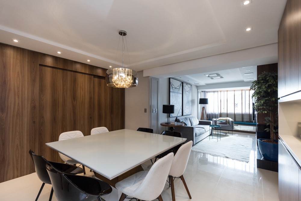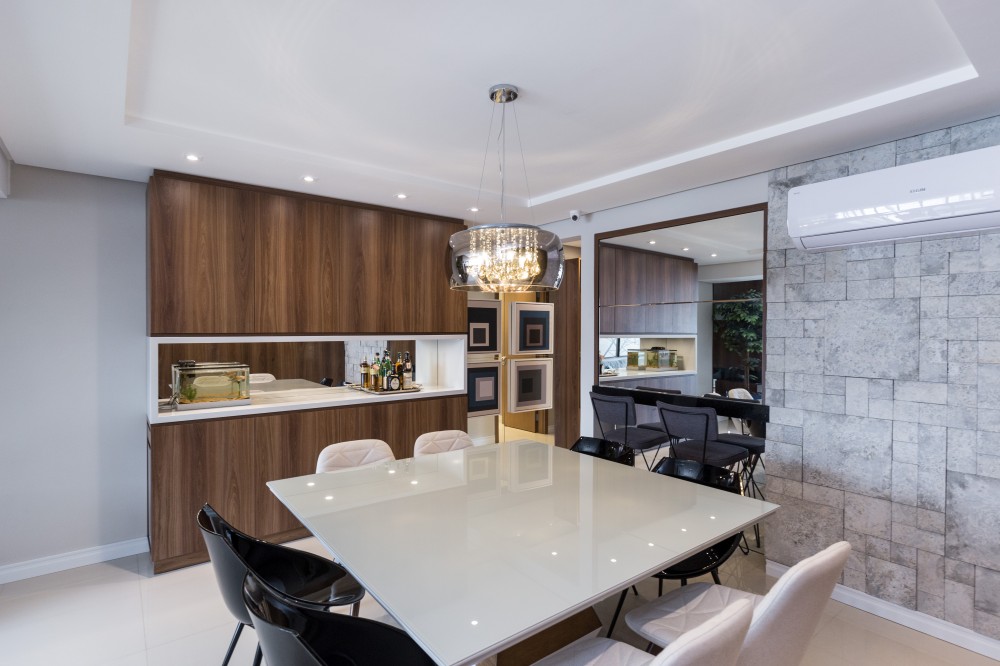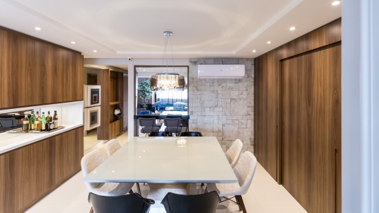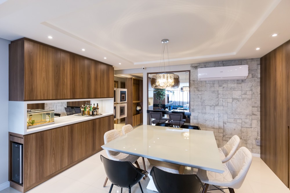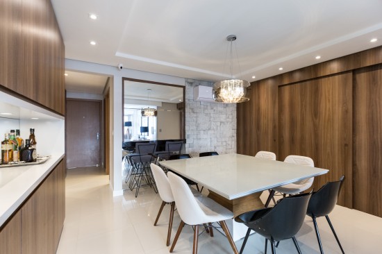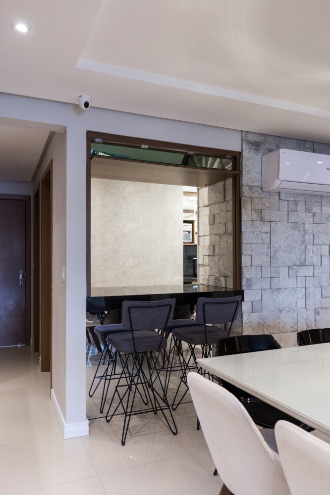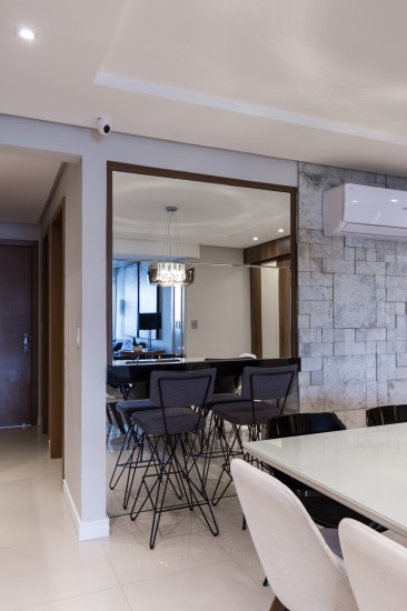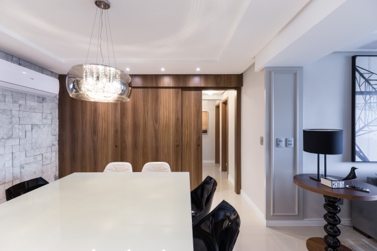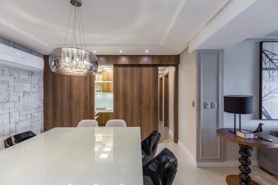 Descrição: Hall, sala de estar e jantar, lavabo, cozinha, área de serviço, gabinete, rouparia, suíte do casal e suítes dos filhos Área: 150 m² Conclusão: Maio/2018 Local: Porto Alegre – RS Fotos: Marcelo Donadussi